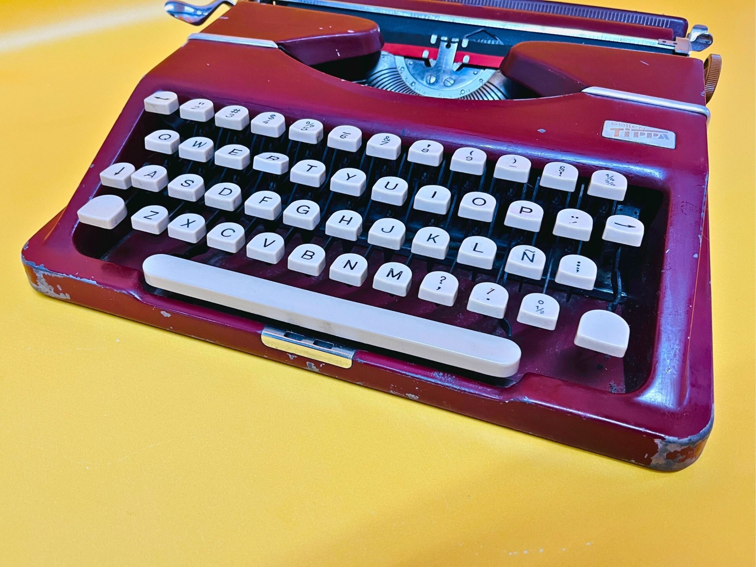 🧭 Classic Maroon-Red Finish – A rare and sophisticated color that enhances its vintage appeal. It shows noticeable signs of use, as seen in the photos, but remains in perfect working condition. One key is missing (see near the backspace) and the backspace bottom is a bit twisted, none of those things preventing from comfortable usage.